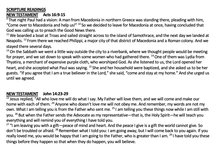 Scripture Acts 17: 22-31 John 14: 15-21