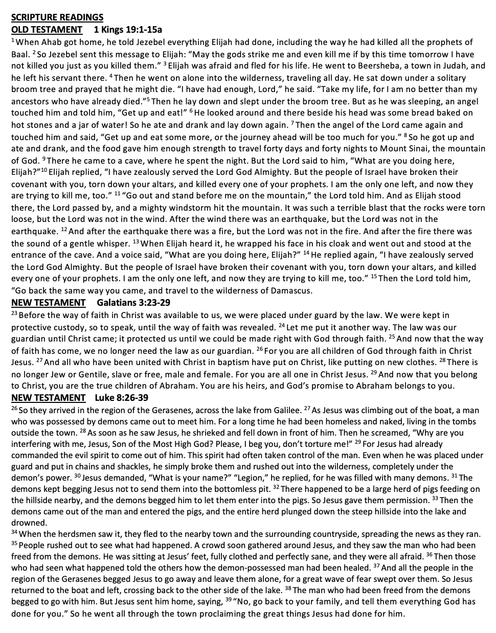 Scripture I Kings 18:20-31 Luke 7: 1-10