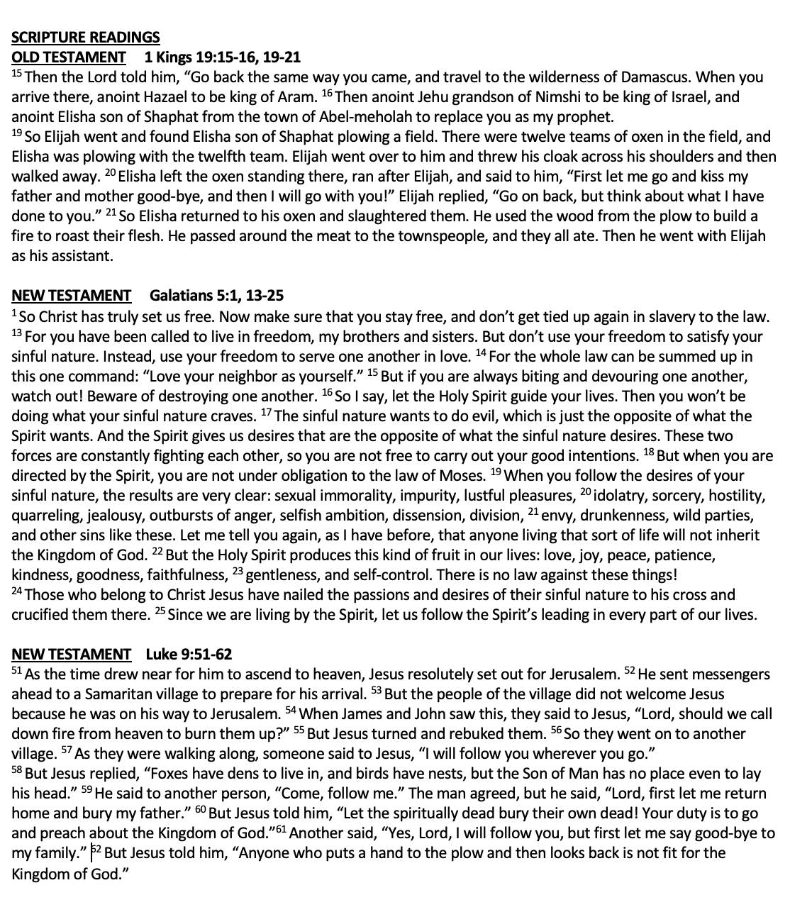 Scripture II Kings 2:1-2 & 6-14 Luke 9:51-62