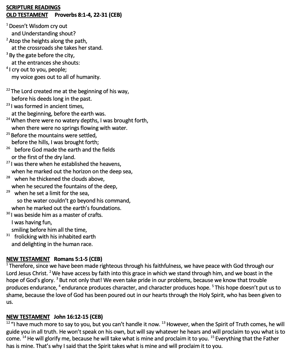 Scripture Acts 2:1-21 Romans 8:22-27 John 15:26-27; 16:4b-15