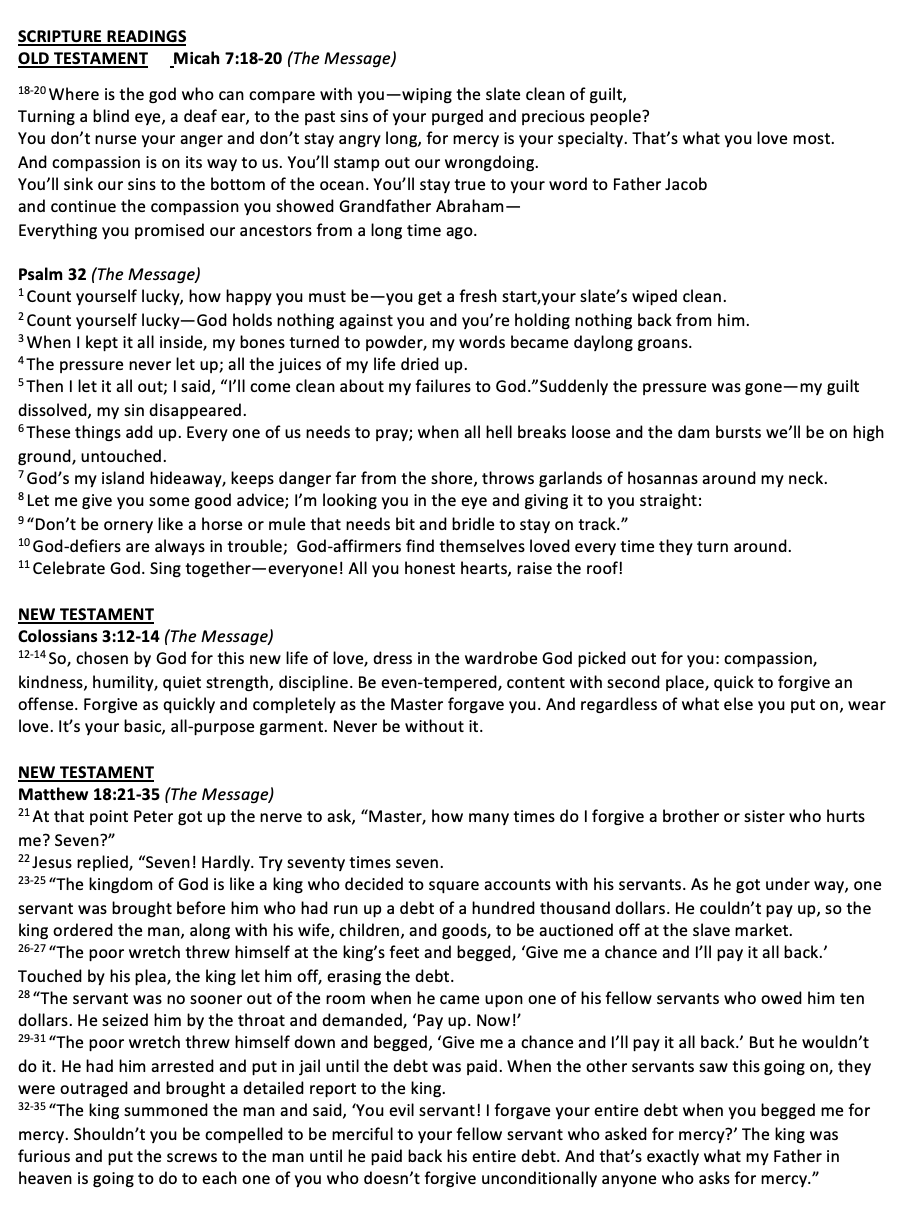 Scripture Psalm 149 Romans 13:8-14 Matthew 18:15-20