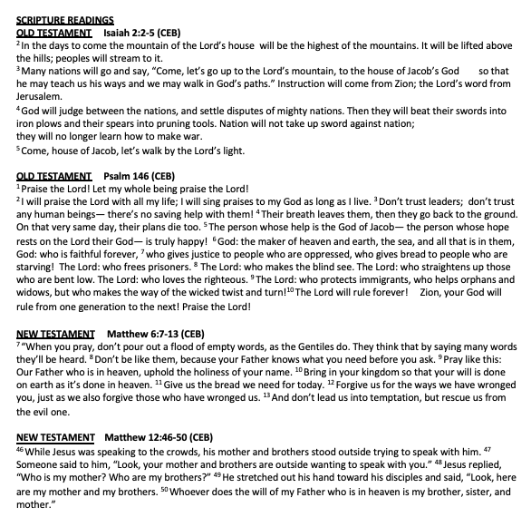 Scripture Isaiah 2:1-5 Matthew 24:36-44