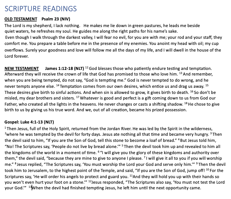 Scripture Deuteronomy 26:1-11 Luke 4:1-13