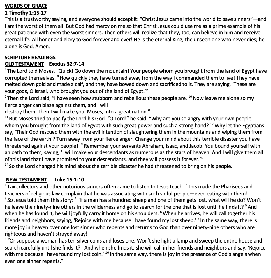 Scripture 1 Timothy 1:12–17 Luke 15:1-10