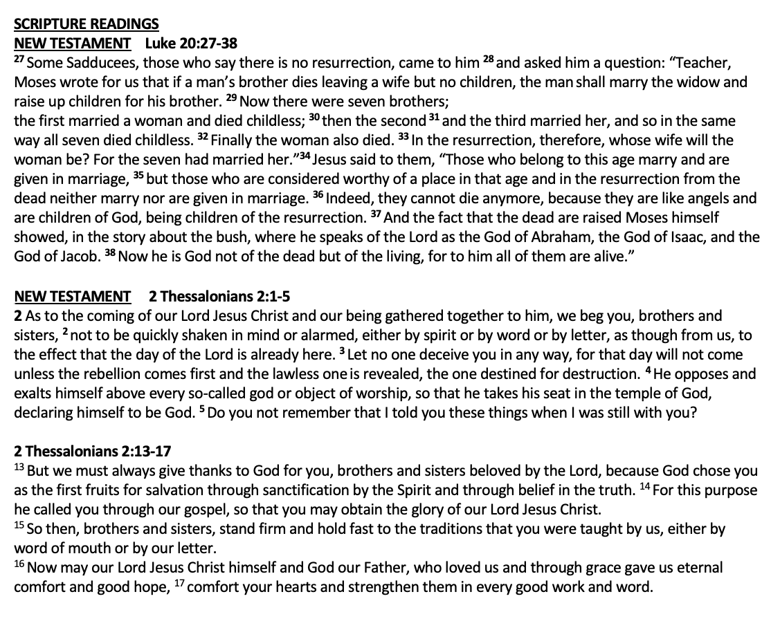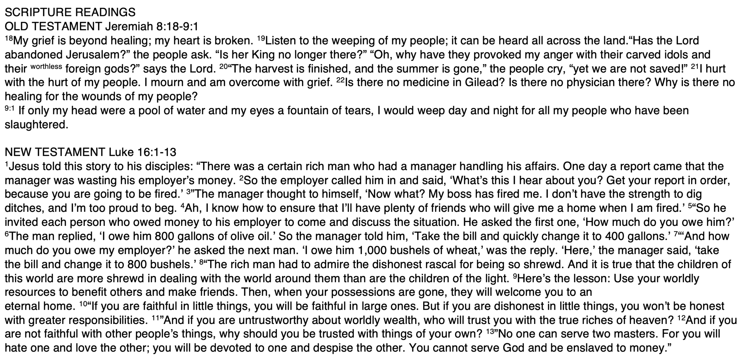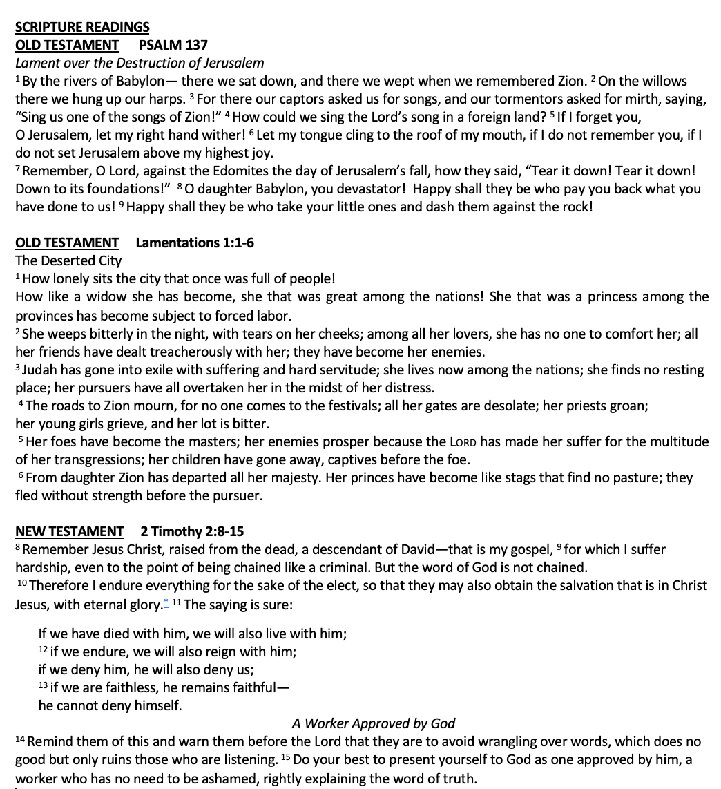 Scripture Jeremiah 31:31-34 2 Timothy 4:6-8, 16-18 Matthew 19:23-26