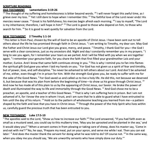 Scripture II Timothy 1:1-14 Luke 17:5-10
