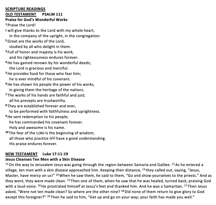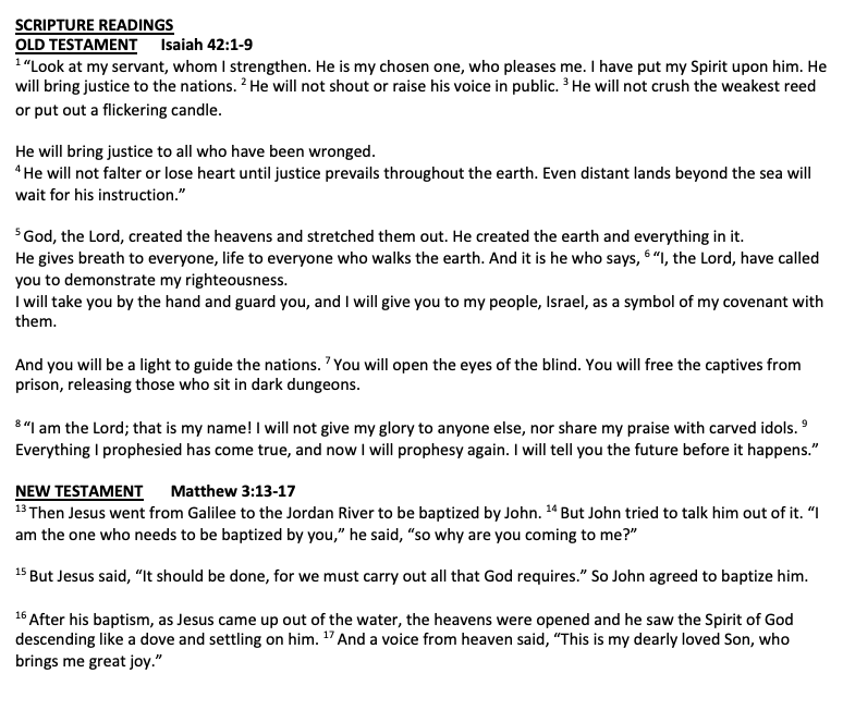 Scripture Nehemiah 8:1-3, 5-6 & 8-10 I Corinthians 12:12-31