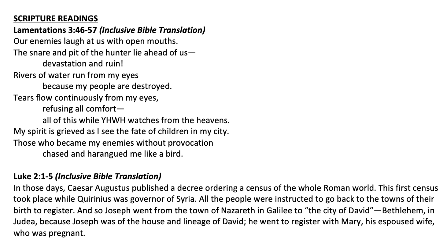 Scripture Isaiah 40:1-5 Luke 2: 1-20