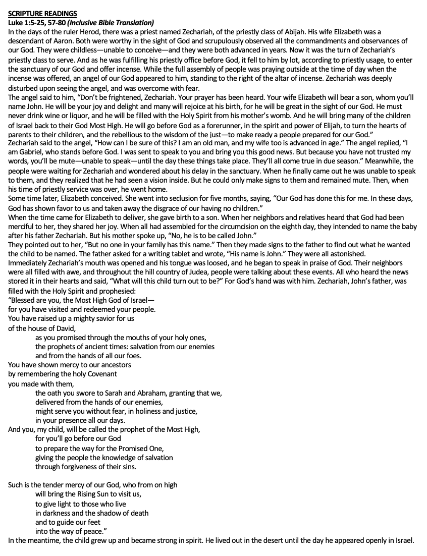 Scripture Luke 1: 39-56 James 5: 7-10 Matthew 11: 2-11