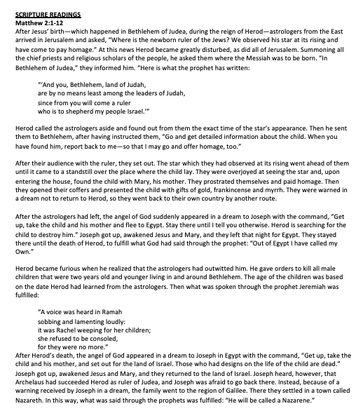 Scripture Isaiah 60:1-6 Mathew 2:1-12