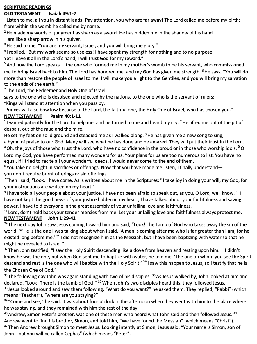 Scripture Isaiah 49:1-7 1 Corinthians 1:1-9 John 1:29-42