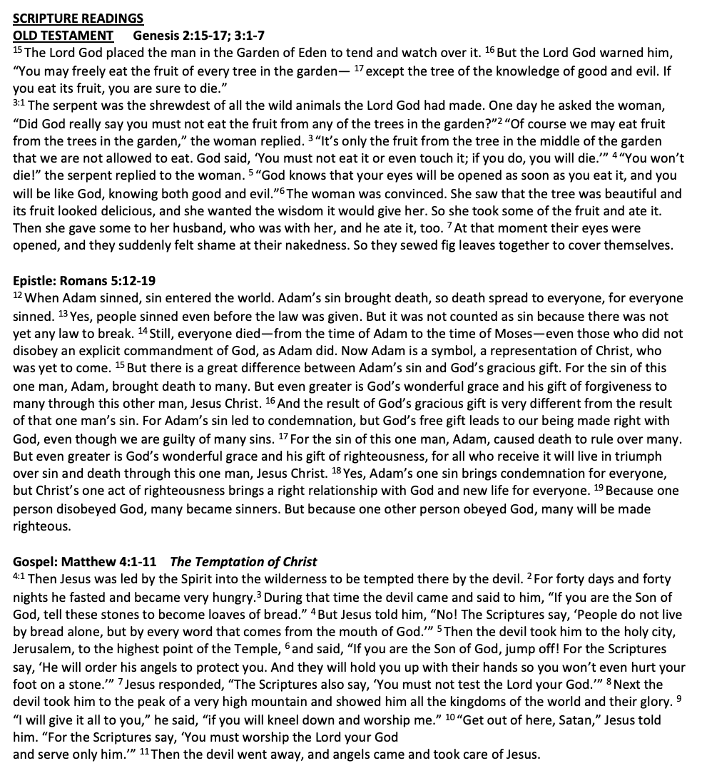 Scripture Matthew 4:1-11 Romans 5:12-19